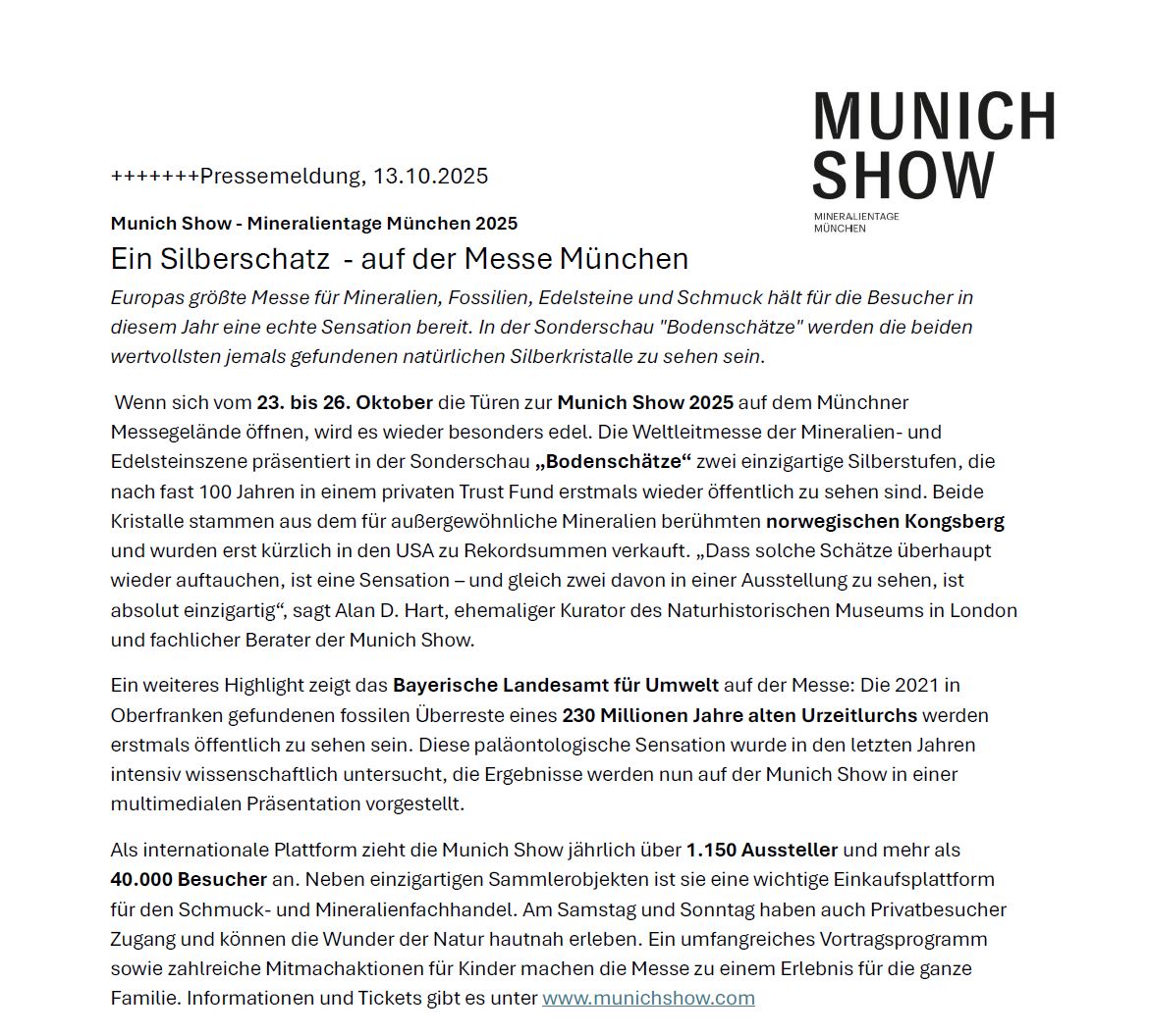 Hier finden Sie Pressemitteilungen der Munich Show und Gemworld Munich.